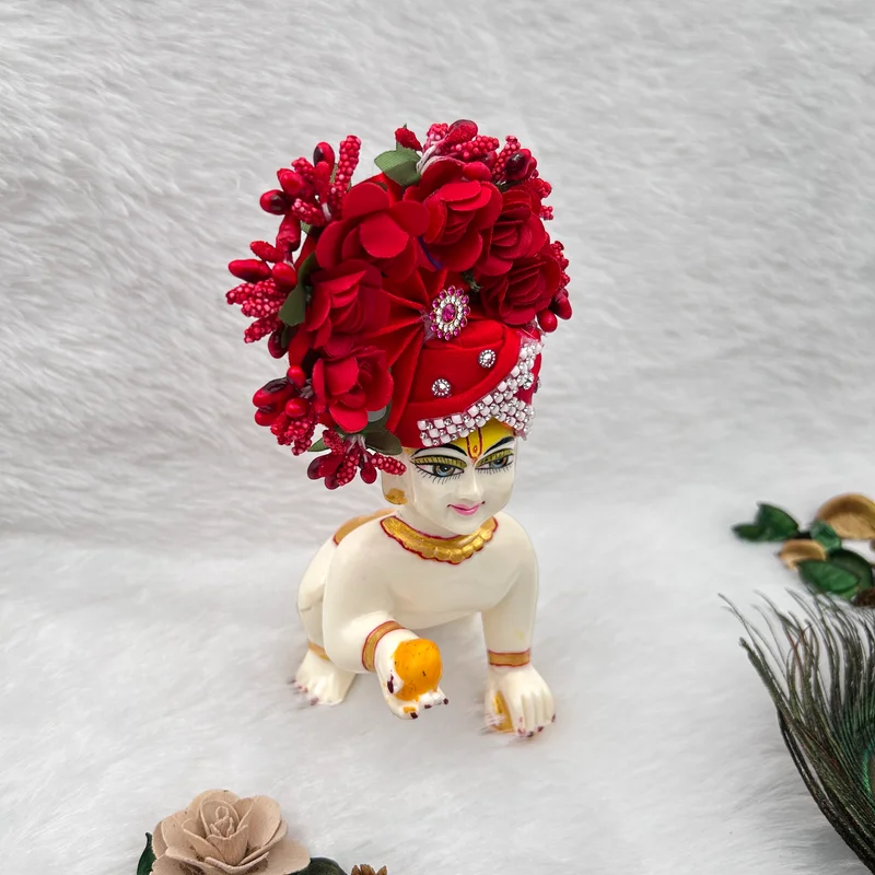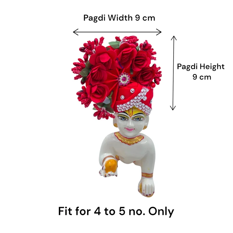Description- Enhance your deity’s divine presence with these beautiful Pagdi, specially designed for Laddu Gopal Thakur Ji, Radha Rani. The detailed craftsmanship and premium materials ensure the Pagdi maintains its beauty through regular use. Designed to fit comfortably to your Idols, ensuring a perfect fit. With different colors, you can easily match the Pagdi with different accessories and dresses. Each Pagdi is crafted by skilled artist, adding a personal touch to your devotional Ornaments and accessories.