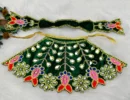 Description- Enhance your deity’s divine presence with these beautiful Lahnga Patka Poshak, specially designed for Mata Rani, Lakkshmi Mata and Khatu Shyam. The detailed craftsmanship and premium materials ensure the poshak maintains its beauty through regular use. Designed to fit comfortably to your Idols, ensuring a perfect fit. With different colors, you can easily match the Dress with different accessories. Each Dress is crafted by skilled artist, adding a personal touch to your devotional dress and accessories.