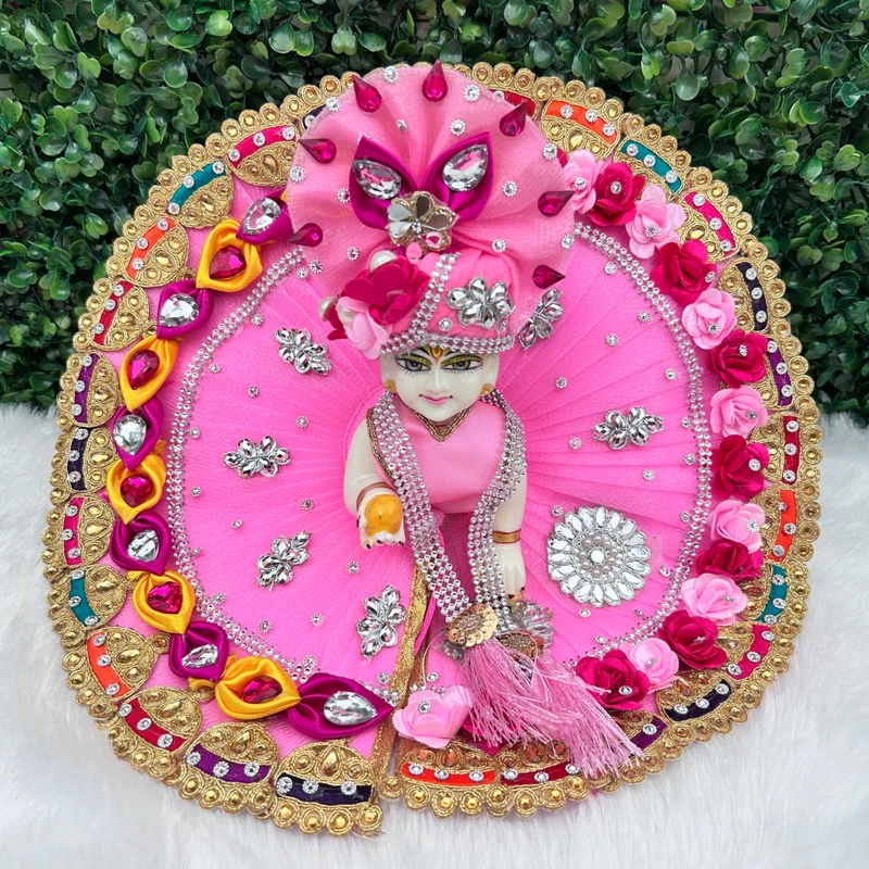 Description- Enhance your deity’s divine presence with these beautiful Poshak, specially designed for Laddu Gopal. The detailed craftsmanship and premium materials ensure the poshak maintains its beauty through regular use. Designed to fit comfortably to your Idols, ensuring a perfect fit. With different colors, you can easily match the Dress with different accessories. Each Dress is crafted by skilled artist, adding a personal touch to your devotional dress and accessories.